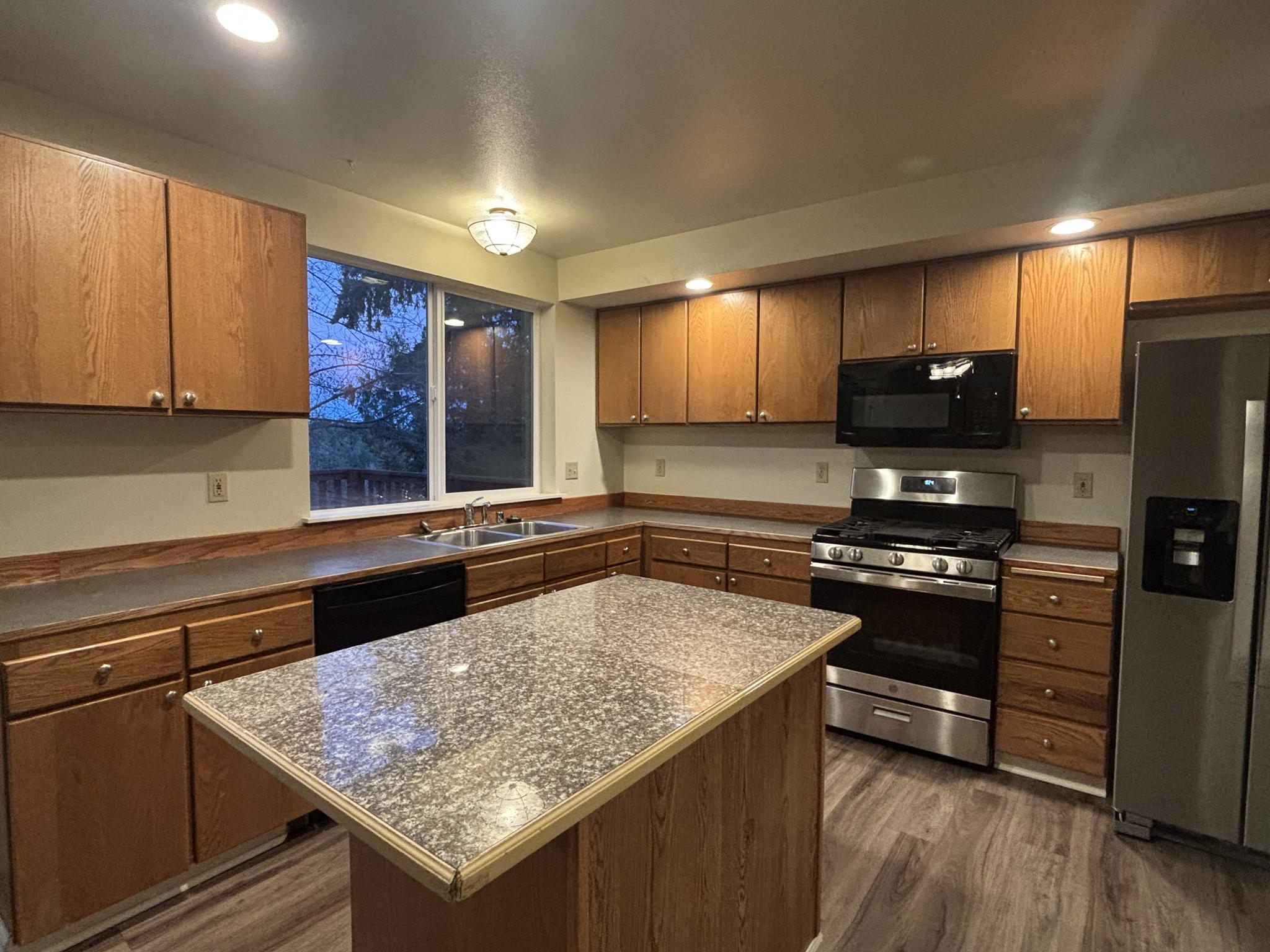 Great home in desirable Ridgetop neighborhood. Home has 4 bedrooms with the primary on the main floor and an office that can be used as fifth bedroom. Living room has a wood-burning fireplace and beautiful windows allowing tons of light! Large dining room with trey ceilings. Kitchen and Family room have cathedral ceilings, kitchen has separate pantry and laundry area. Family room has sliding door to big deck looking over terraced back yard. French doors to primary bedroom with deck access through sliding door, on-suite bath with separate soaking tub and walk in closet. Office off front entry can be used as fifth bedroom. Upstairs are three more bedrooms, full bath and nook. Two car garage. No third party credit reports or applications accepted. Sorry, no pets.