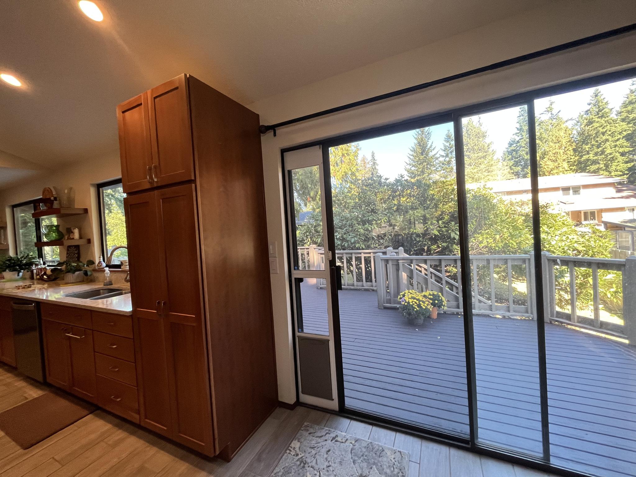Kitchen has been updated and features a large island and has lots of cabinetry, open shelving, and large windows that bring in all the natural light. This pet friendly home has a pet door built in to the slider that leads out to the large deck that overlooks the generously sized, fully fenced back yard. On the front of the home, another slider leads out to the front porch that has been converted into an enclosed Catio. The primary en-suite bedroom is located on the main floor and has it's own slider accessing the back deck. Downstairs features a huge den with gas fireplace, a 3/4 bathroom and a 4th bedroom. This home truly has plenty of space for everyone!